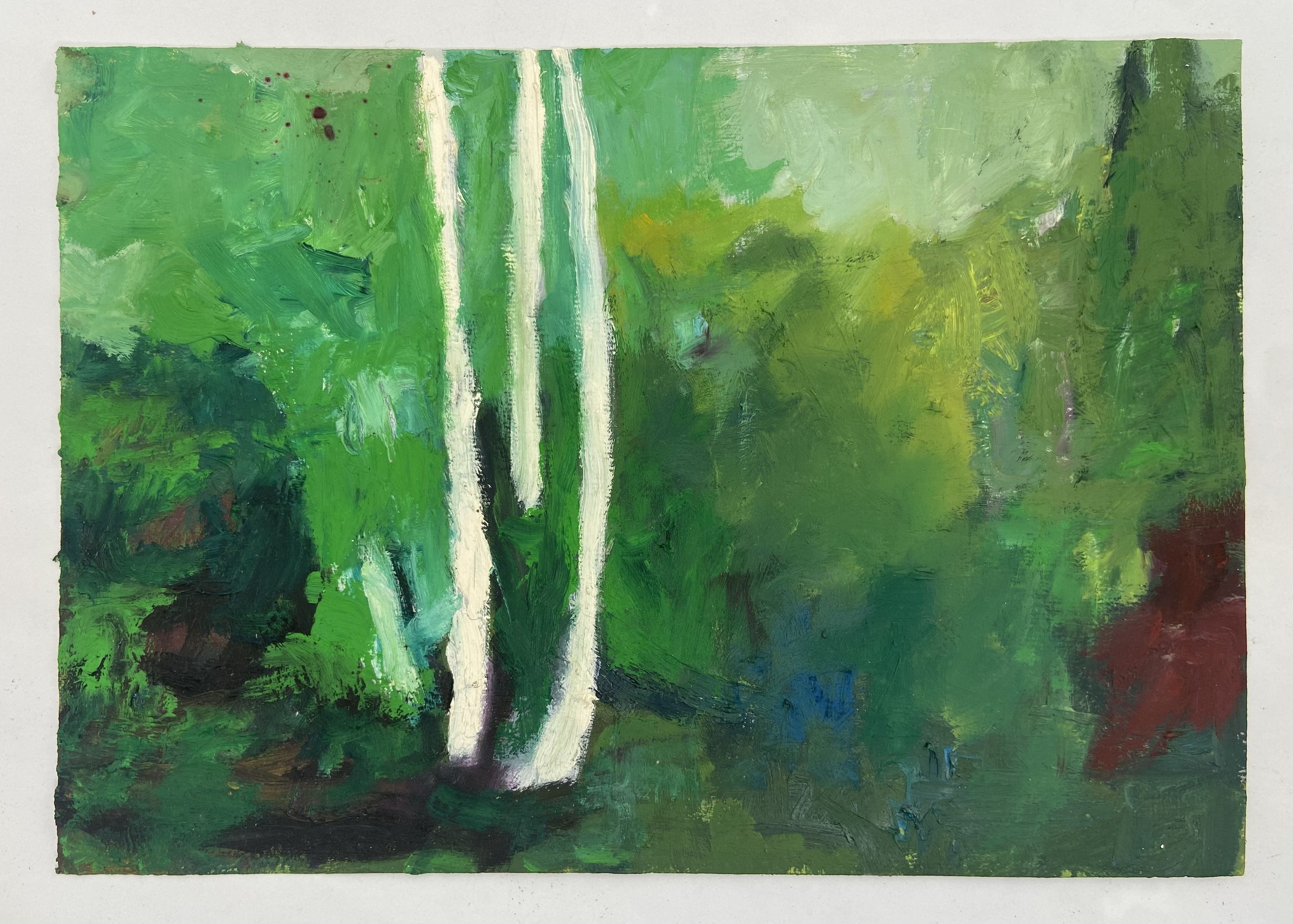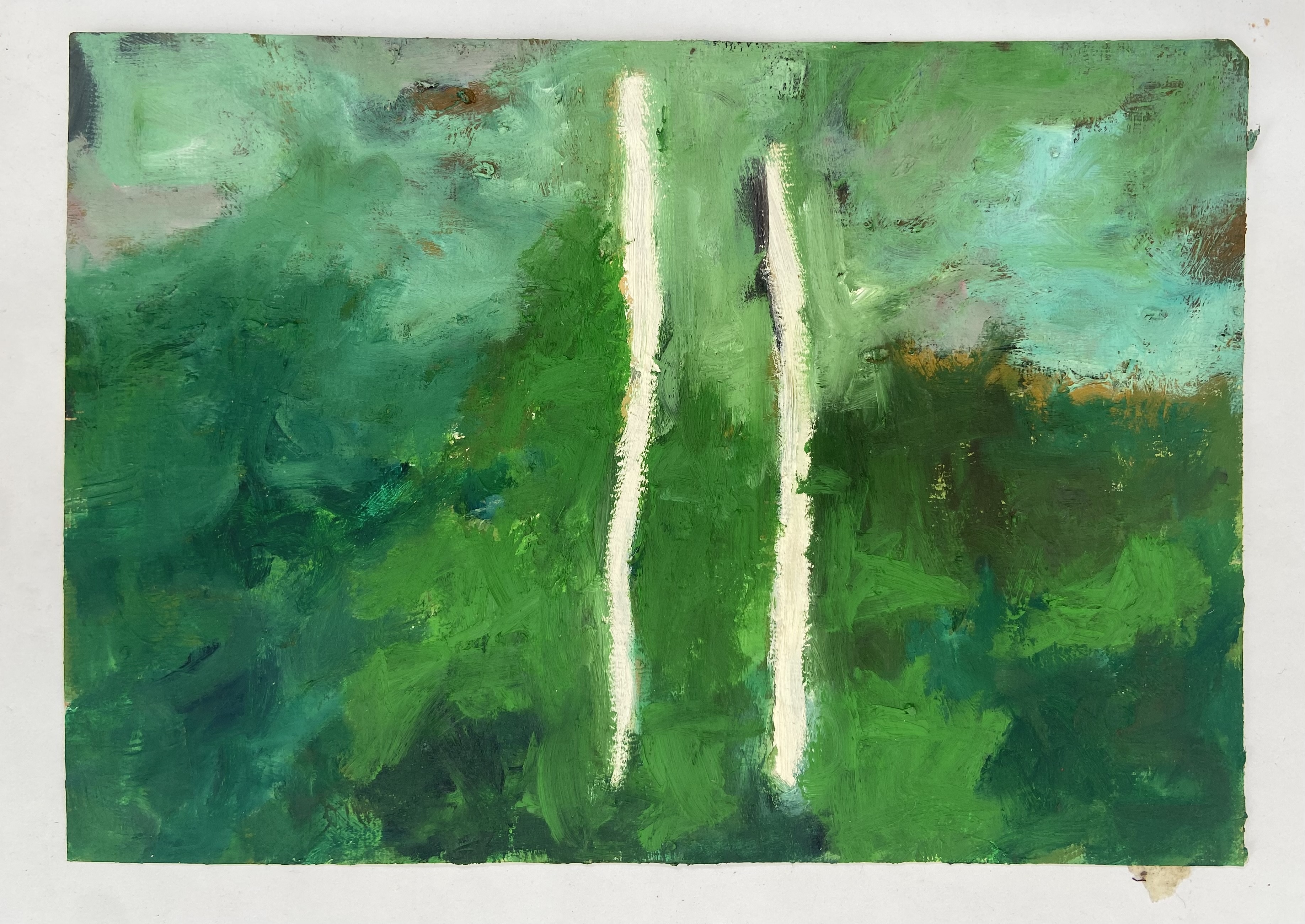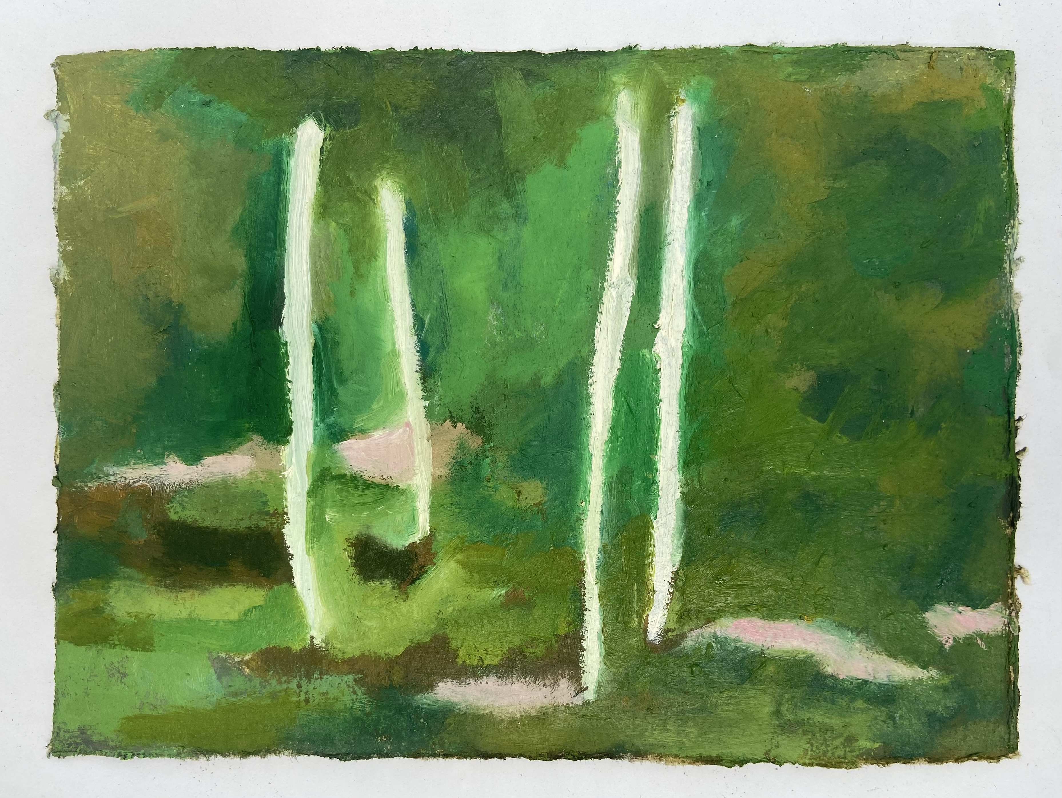 The days that seemed endless, timeless and season-less were bookended by two phone calls made to the hospital each day. The awake hours were taken up with a small walk within our designated radius, emails sent to people who were asking, and visits from friends as we spoke at a distance. Still, my mind was never quite with me. These small paintings were made when I managed to find some work that completely engrossed me, even if it was only for a short time.