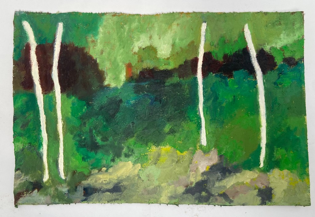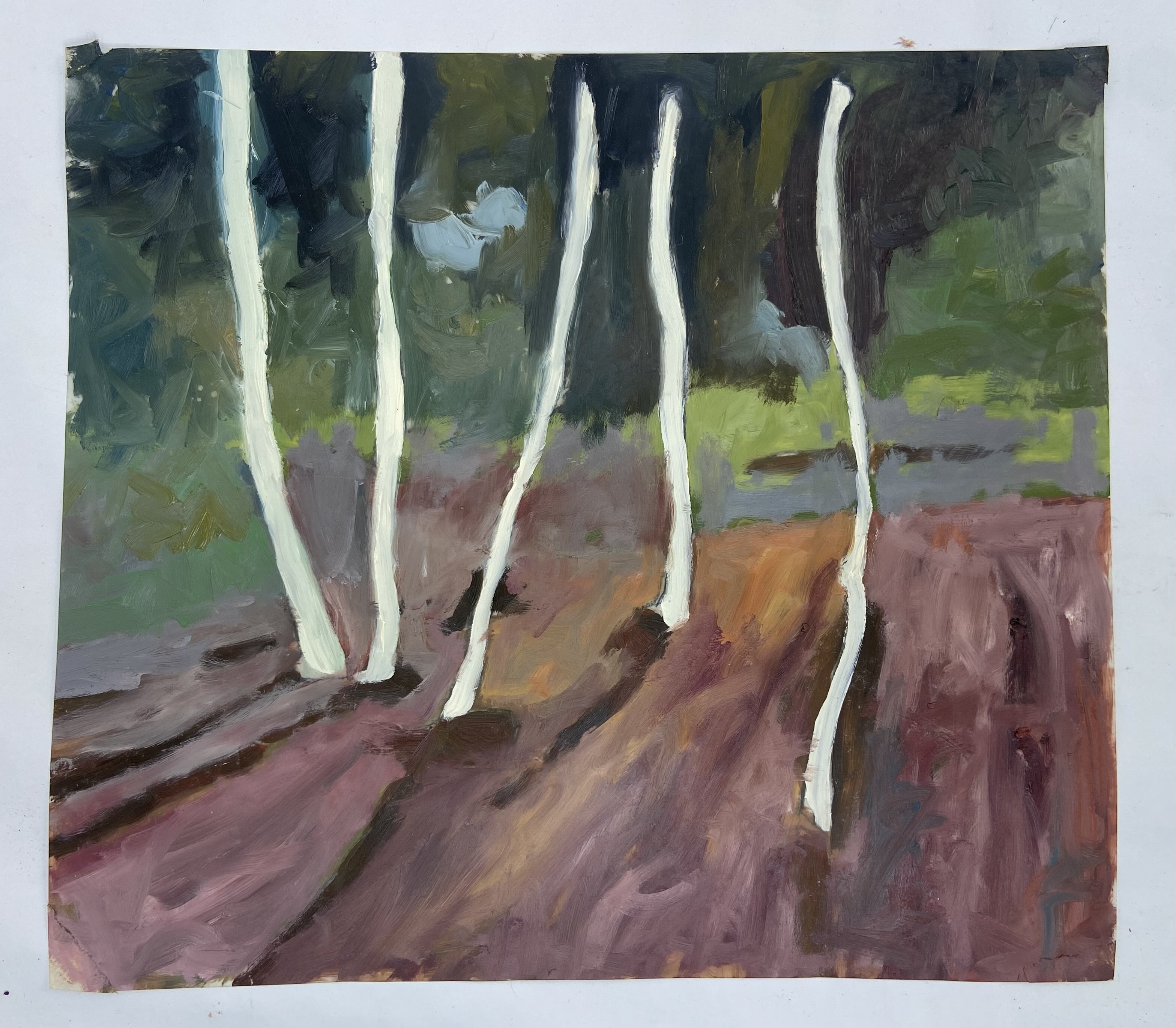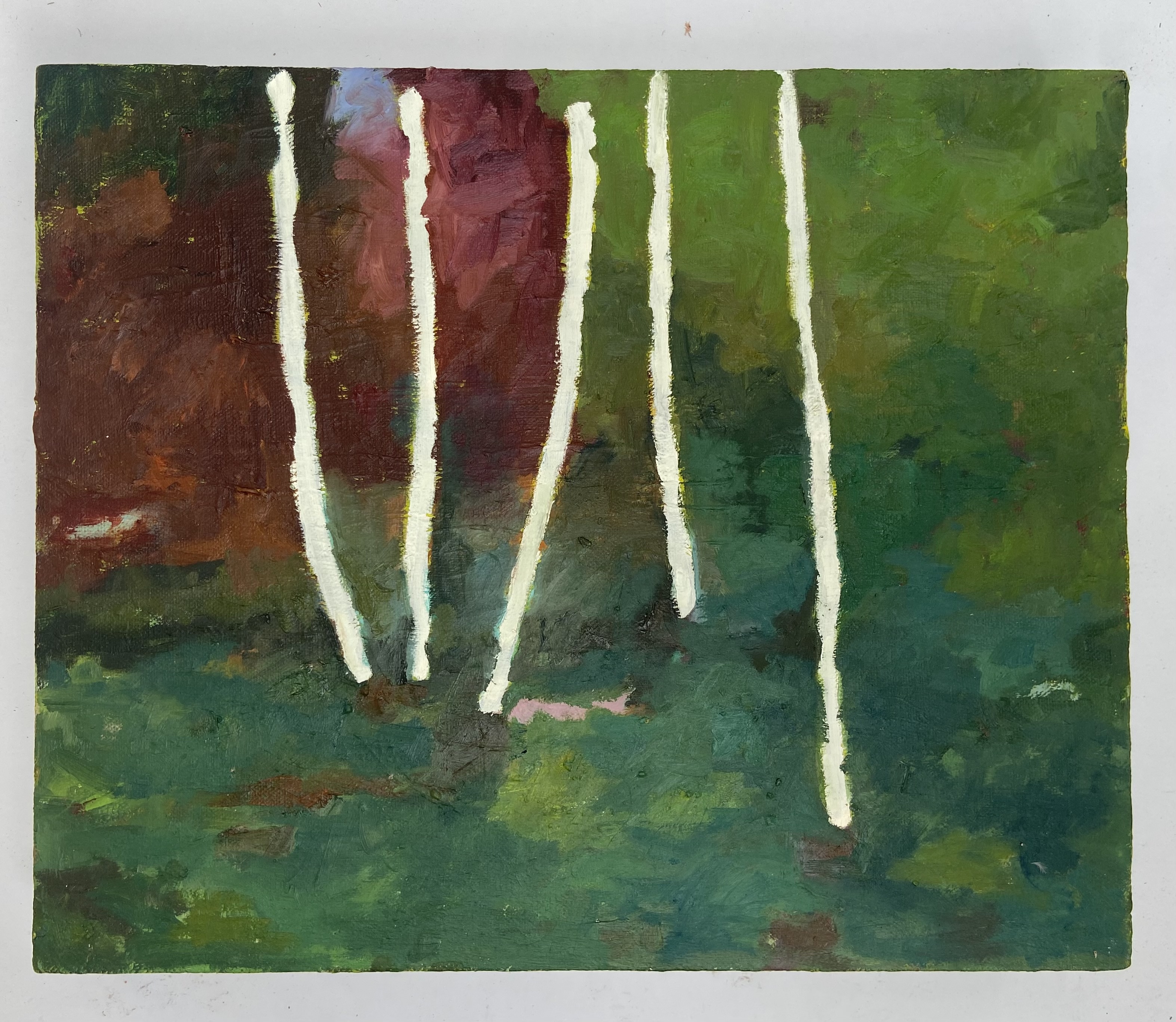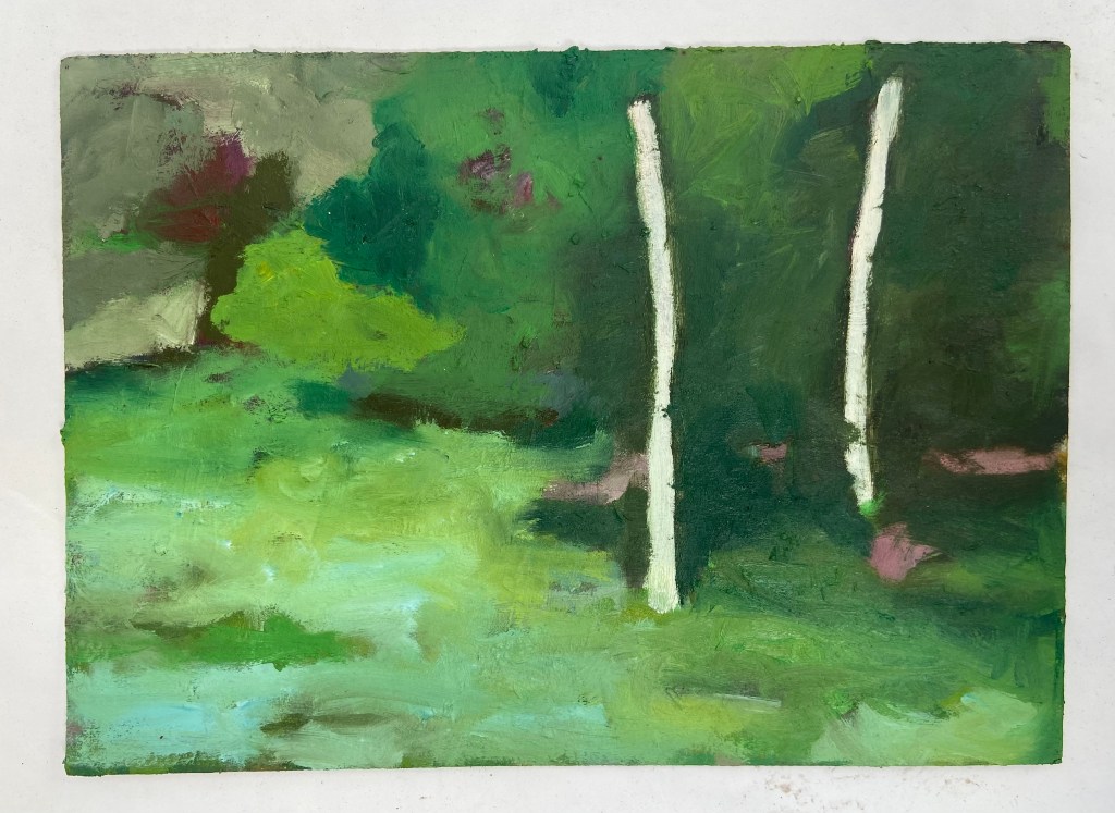 The days that seemed endless, timeless and season-less were bookended by two phone calls made to the hospital each day. The awake hours were taken up with a small walk within our designated radius, emails sent to people who were asking, and visits from friends as we spoke at a distance. Still, my mind was never quite with me. These small paintings were made when I managed to find some work that completely engrossed me, even if it was only for a short time.