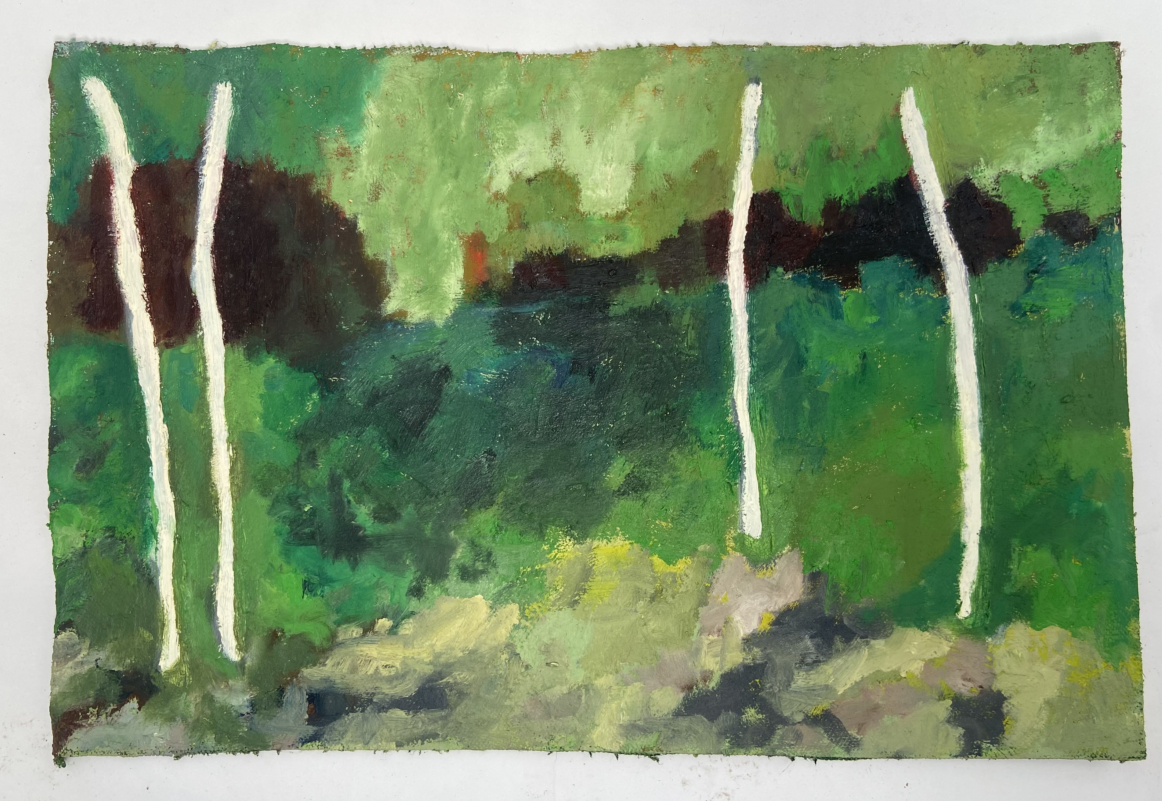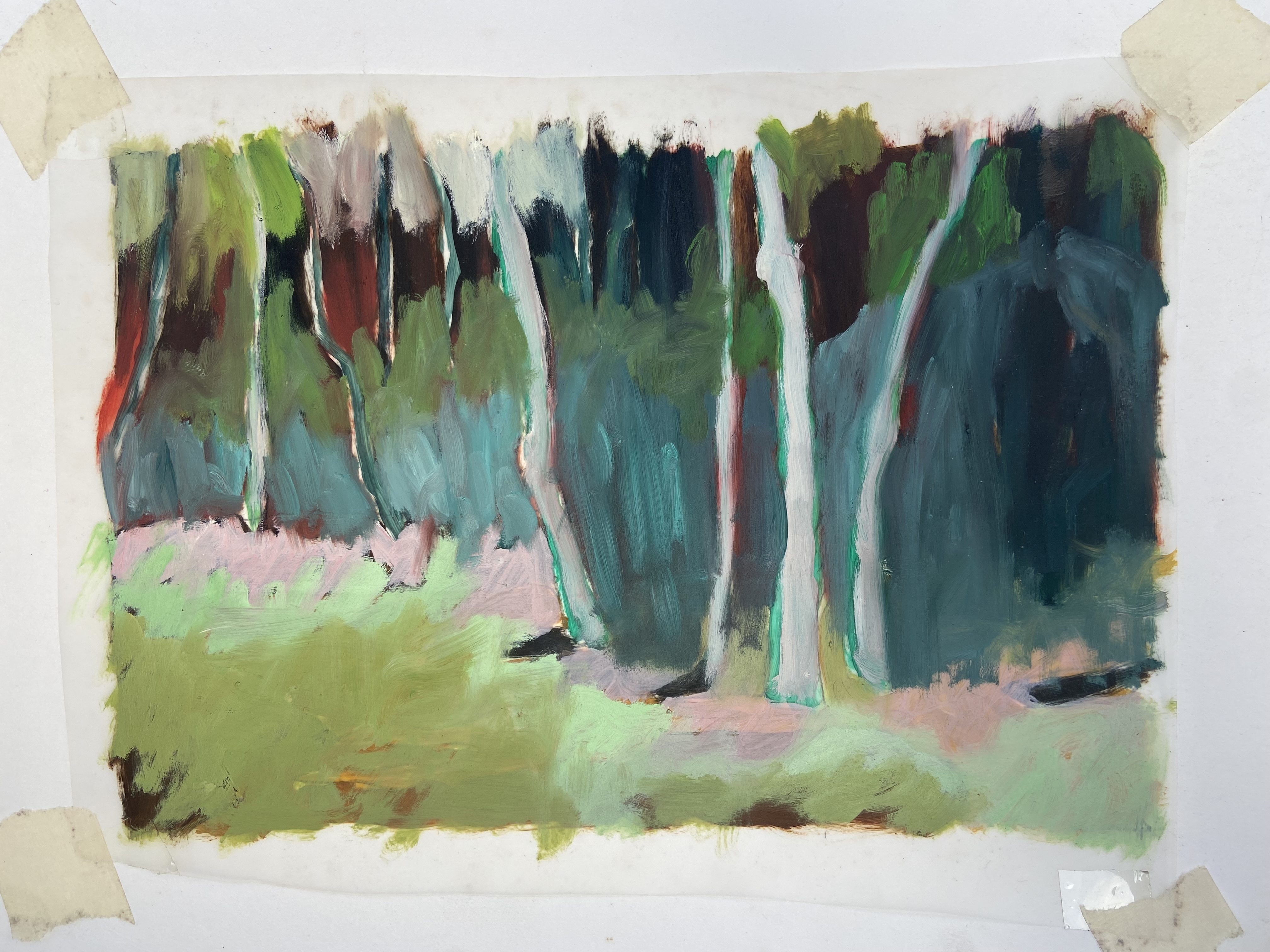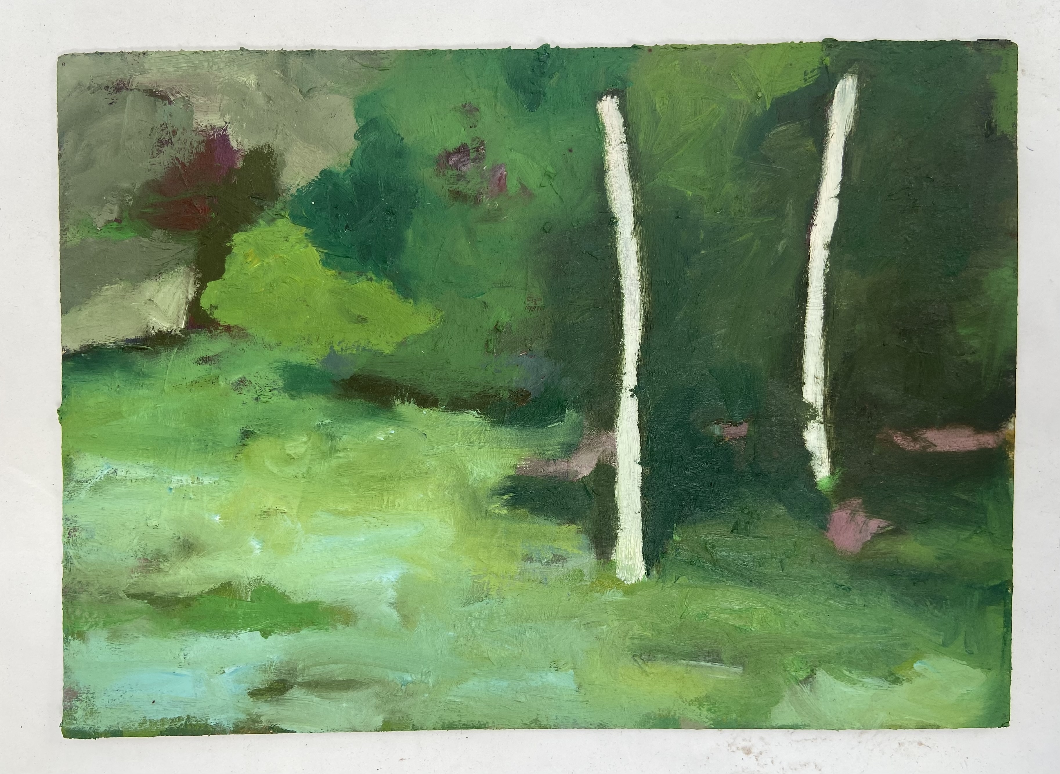 The days that seemed endless, timeless and season-less were bookended by two phone calls made to the hospital each day. The awake hours were taken up with a small walk within our designated radius, emails sent to people who were asking, and visits from friends as we spoke at a distance. Still, my mind was never quite with me. These small paintings were made when I managed to find some work that completely engrossed me, even if it was only for a short time.