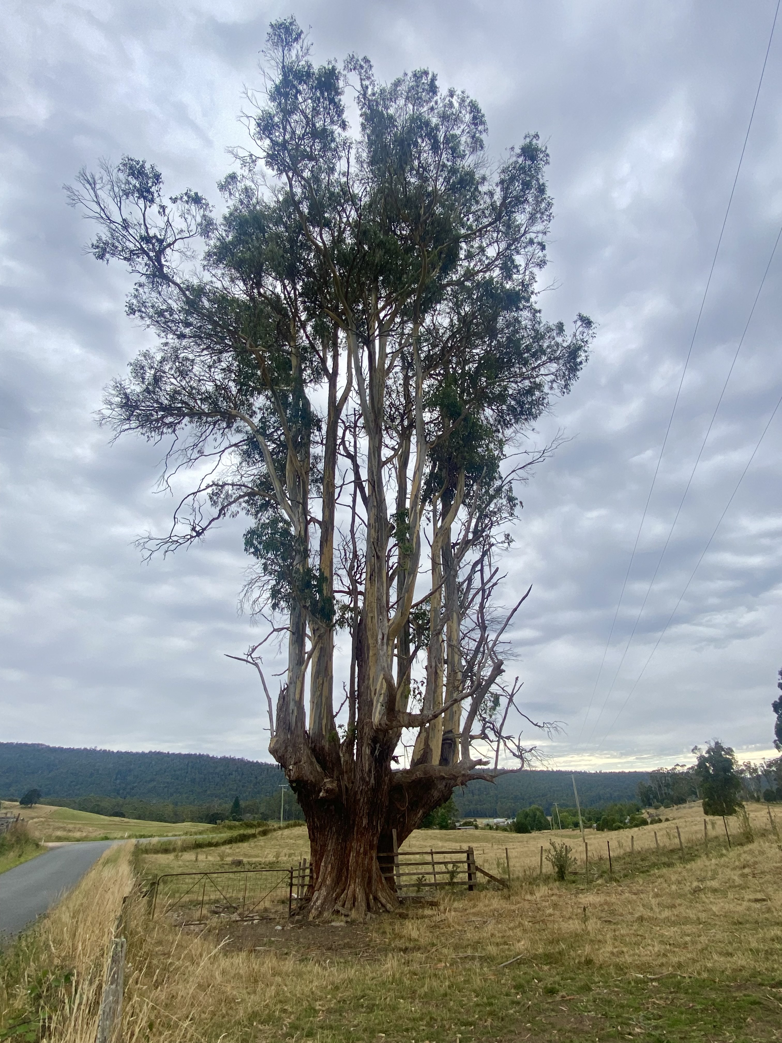 07.02.2023. The heat is intense and my feet are sweating. My destination is a spot outside the town of Swansea where White Giants (trees) are marked on a map at the information stop. BTW, these information stops are everywhere with local info and suggested trips. I drive and drive and follow the signs for these trees. The area has been freshly logged and so is not the most attractive. Then the signs stop and I have no idea where I am, there is no phone signal either. I make a guess and follow the worst road I have driven in a long time. I crawl the van through ruts and dips, boulders that could do big damage and with the lack of signal this is not a time to breakdown. The remaining, standing, thick forest has tracks with fences and people’s names on them, people actually live here and drive this road frequently. Their vehicles are probably more able. I consider turning back but I don’t. I make a quick calculation as to how much drinking water I still have onboard. I persevere. Finally I see some blue light of the sky peeking through tree tops and I know I am coming to the end of this Red Riding Hood forest. The road suddenly plunges downwards and I am among green fields with Black Angus cows. I stop and make a coffee, just to that I can look and admire and laugh at the madness of that non road.