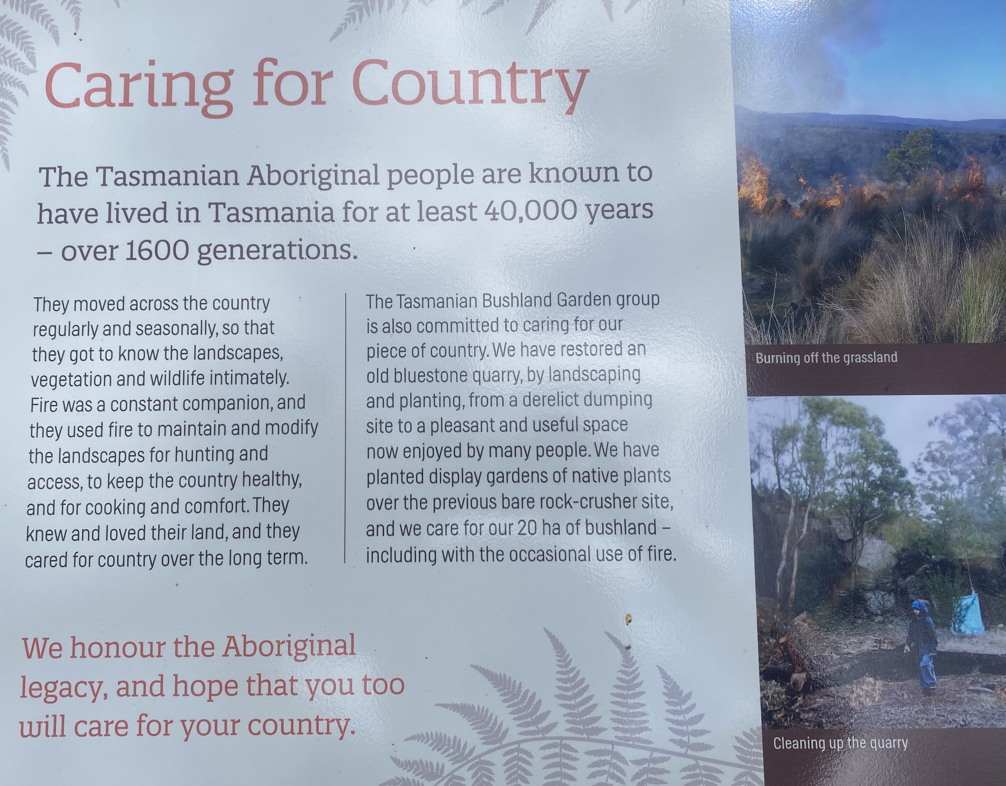 “The reason there was no word for land was because “we define land as something that is part of us – not separate ” Douglas Mynard. Wilson’s Promontory (1).