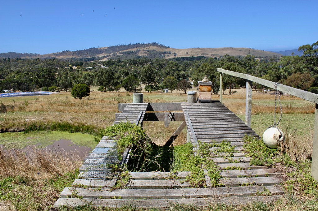 Derwent: it is here that I find the amazing community garden. A biggish town with an art community and many old buildings that were built, most likely, by convicts. The English vibe is back again. I visit the exhibition on show and then head for the community garden. It is impressively large and well taken care of. A pizza oven is even part of the amenities. There is a huge banner stating ‘Dewent Community Garden’ so that there can be no mistaking. The location is inviting as it sits on the floor of a little valley, surrounded by various trees and flowering bushes. Alas there are no gardeners present.